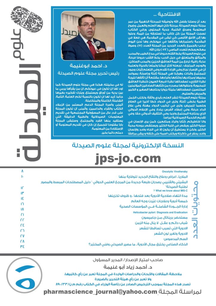 ويحتوي العدد ٥١ على عدد من المقالات والدراسات الهامة التي كتبها صيادلة من الاردن وخارجه،