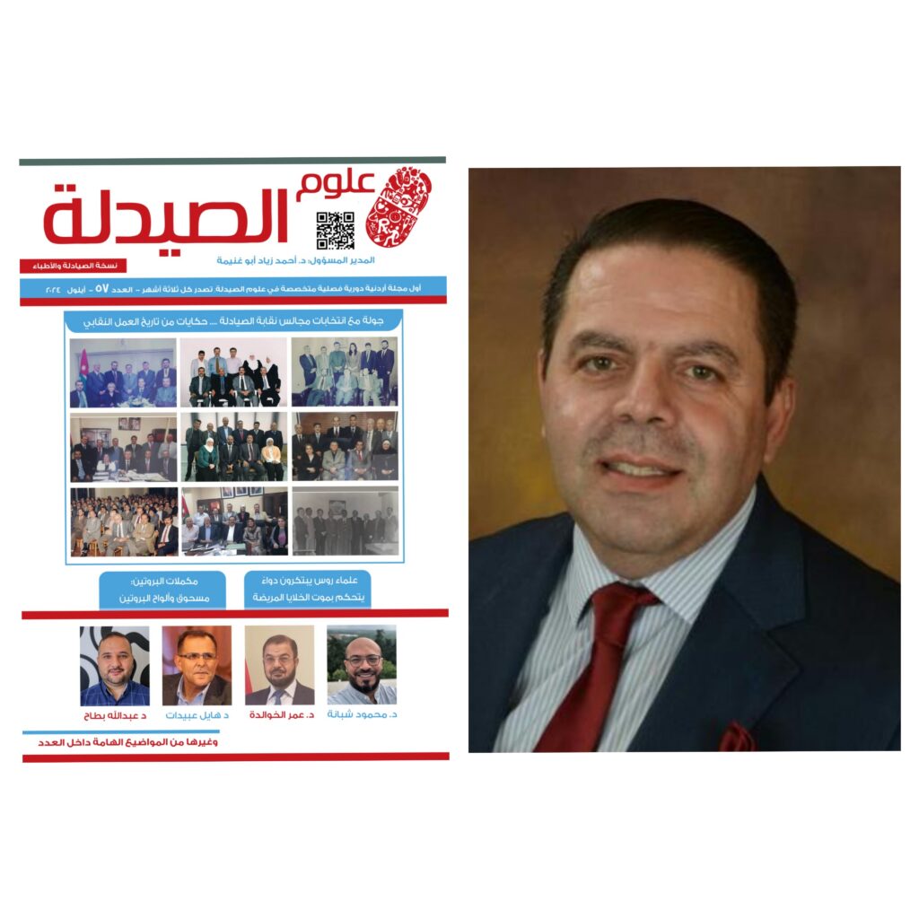ويراس تحرير المجلة وصاحب امتياز إصدارها الدكتور أحمد زياد أبو غنيمة المدير المسؤول ورئيس تحرير مجلة علوم الصيدلة