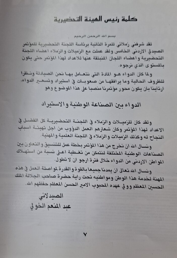 (الصور المرفقة من كتيب المؤتمر الصيدلاني الخامس، من أرشيف معالي الزميل د. طاهر الشخشير).