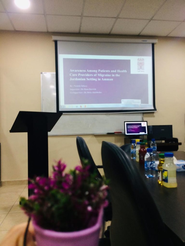 الزميلة د. نرمين طبازة تحصل على الماجستير بتقدير امتياز (الاولى على دفعتها): دراسة مدى الوعي بمرض الصداع النصفي