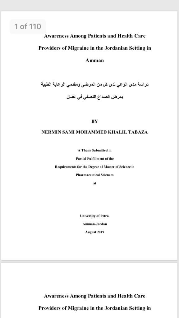 تعتبر هذه الدراسة من اولى الدراسات اللي تمت في عمان حول الوعي بمرض الصداع النصفي.