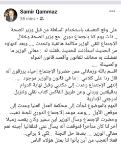 كتب د. سمير القماز مدير مختبرات الدواء في وزارة الصحة سابقا، حادثة حدثت معه مع احد وزراء الصحة، جاء فيها: