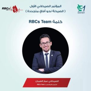 اكّد د. عمار العمران، مؤسس ورئيس فريق RBCs Team ، تواصل الاستعدادات لعقد مؤتمرهم الصيدلاني الاول الذي سيعقد برعاية دولة الزميل د. عبد الرؤوف الروابدة رئيس الوزراء السابق ، وبدعم كبير من مجموعة صيدليات Pharmacy One.