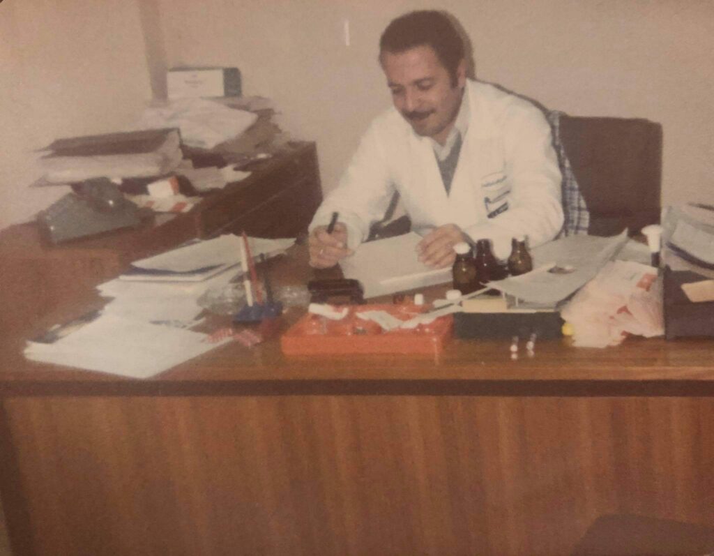 بالإضافة إلى ذلك فقد مارس مهنة الصيدلة في صيدليته الخاصة قرابة الأربعين عاماً واستمر في خدمة مهنته حتى وافته المنية، بعد أن قام بنقل شغفه للمهنة إلى اثنين من أبنائه: