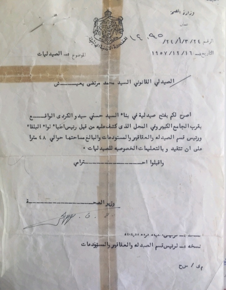 وثائق عمرها ٧٠ عاماً.. صيدلية ” يعيش ” وسط البلد .. من اوائل الصيدليات في عهد المملكة الأردنية الهاشمية