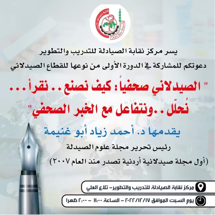 ” الصيدلاني صحفياً..كيف نصنع..نقرأ..نُحلّل..ونتفاعل مع الخبر الصحفي “