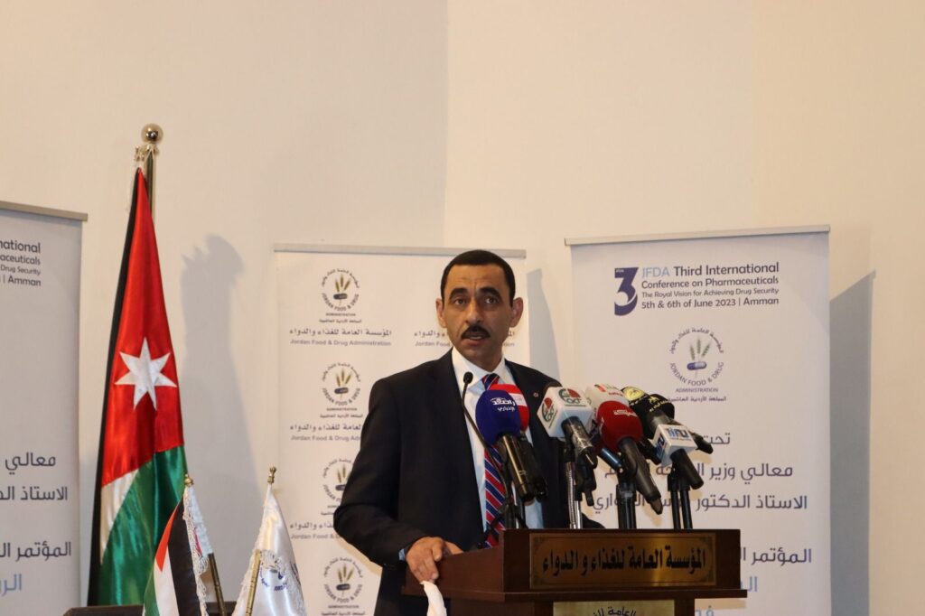 أكد مدير عام المؤسسة العامة للغذاء والدواء الأستاذ الدكتور نزار محمود مهيدات على أن رؤية التحديث الإقتصادي التي جاءت بتوجيهات ملكية سامية وضعت القطاع الدوائي في مقدمة أولوياتها باعتباره قطاعا رائدا وواعدا حيث أن آفاقه وفرصه قابلة للتطور والتوسع بشكل كبير وبما يسهم في تعزيز الأمن الدوائي ورفد عجلة النمو الاقتصادي، وذلك خلال مؤتمر صحفي للإعلان عن تفاصيل فعاليات مؤتمر الدواء الدولي الثالت بعنوان “الرؤى الملكية في تحقيق الأمن الدوائي”