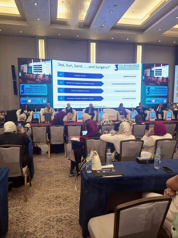 الجلسة النقاشية السادسة في المؤتمر الدولي الثالث للدواء عن ” أهمية الابتكارات الدوائية والأدوية ذات القيمة المضافة في الأمن الدوائي وتحقيق وصول الأدوية المبتكرة وذات القيمة المضافة إلى المرضى”