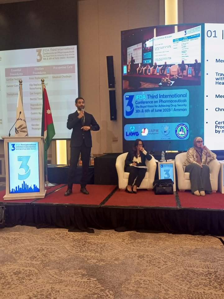 ضمن فعاليات مؤتمر الدواء الدولي الثالت بعنوان “الرؤى الملكية في تحقيق الأمن الدوائي” ناقشت الجلسة النقاشية السادسة أهمية الابتكارات الدوائية والأدوية ذات القيمة المضافة في الأمن الدوائي وتحقيق وصول الأدوية المبتكرة وذات القيمة المضافة إلى المرضى