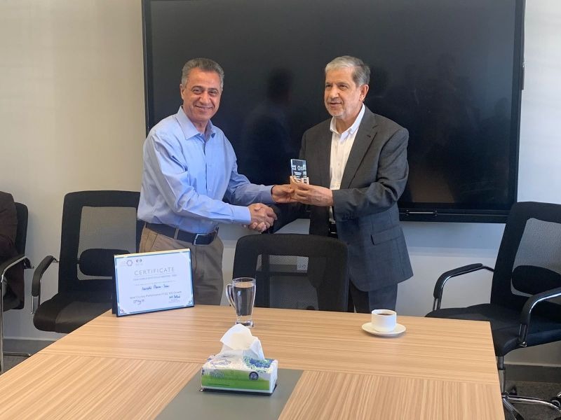 وقام الدكتور خميس خميس مدير التسويق و المبيعات للمجموعة، بتسليم الدرع لرئيس المجموعة الدكتور فضل نيروخ تعبيرا عن شكره و تقديره لتوجيهه و دعمه الدائم مما ساهم بشكل مباشر بتحسين الاداء و الحصول على نتائج مميزة.