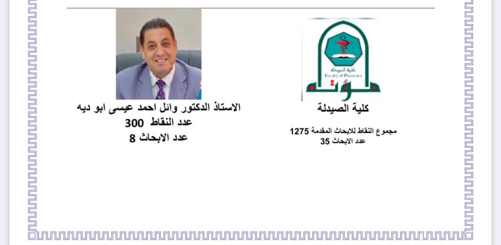 وقد حقق الزميل الصيدلاني البرفيسور وائل أحمد أبوديه