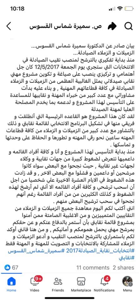 كتبت البيان و أرسلته لها و أخبرتها بان تعدل عليه بما يتناسب و شخصيتها ، فلربما كان طرحي حاداً لا يتناسب معها و لكن المفاجأة انها اعادت لي البيان و طلبت مني ان اكون اكثر حدية و وضوح في رفضها للضغوطات و التدخلات من خارج الجسد النقابي، فكان لها ذلك ، و فعلاً نشرت البيان ( البيان في التعليق الاول )