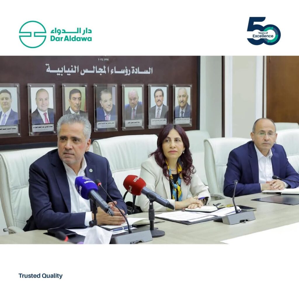 اجتمع الدكتور خالد حرب، الرئيس التنفيذي لشركة دار الدواء، والدكتورة حنان السبول، الأمين العام لجمعية منتجي الأدوية، مع رئيس وأعضاء لجنة الصحة والغذاء في مجلس النواب في مقر المجلس، يوم أمس الثلاثاء ١١ اذار ٢٠٢٥ ، حيث جرى خلال اللقاء بحث واقع قطاع التصنيع الدوائي في الأردن، وأبرز التحديات التي تواجهه محليًا ودوليًا.
