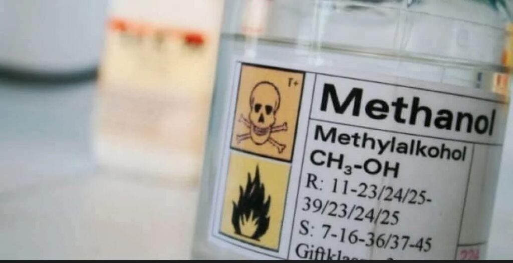 الميثانول سام جدًا للإنسان، ويمكن أن يؤدي تناوله أو استنشاقه أو امتصاصه عبر الجلد إلى: