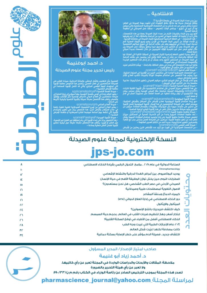 ويراس تحرير المجلة وصاحب امتياز إصدارها الدكتور أحمد زياد أبو غنيمة المدير المسؤول ورئيس تحرير مجلة علوم الصيدلة