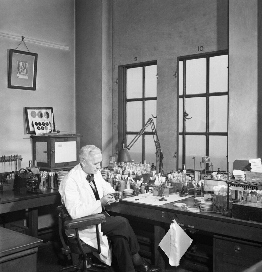 تم اكتشاف البنسلين عام 1928 على يد الكسندر فليمنغ، الذي لاحظ أن العفن قد قتل بعض البكتيريا في طبق بتري الذي تركه مفتوحًا طوال الليل. ثم طور طريقة لاستخلاصها من العفن وتحويلها إلى حبة مضاد حيوي فعالة.