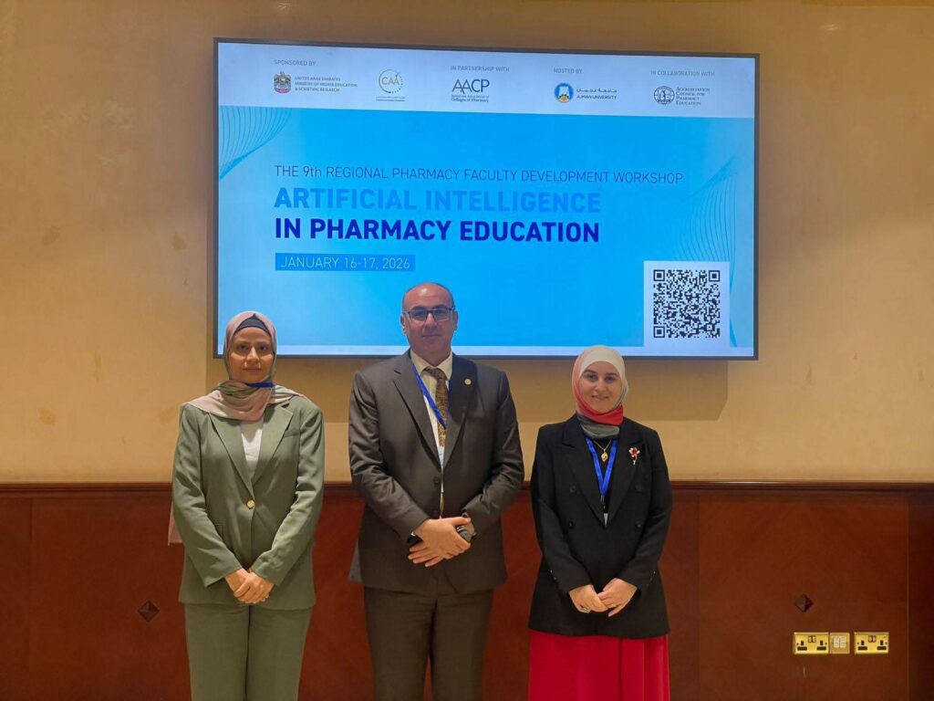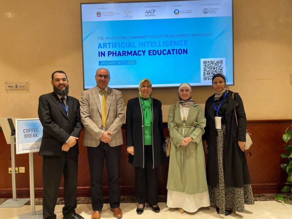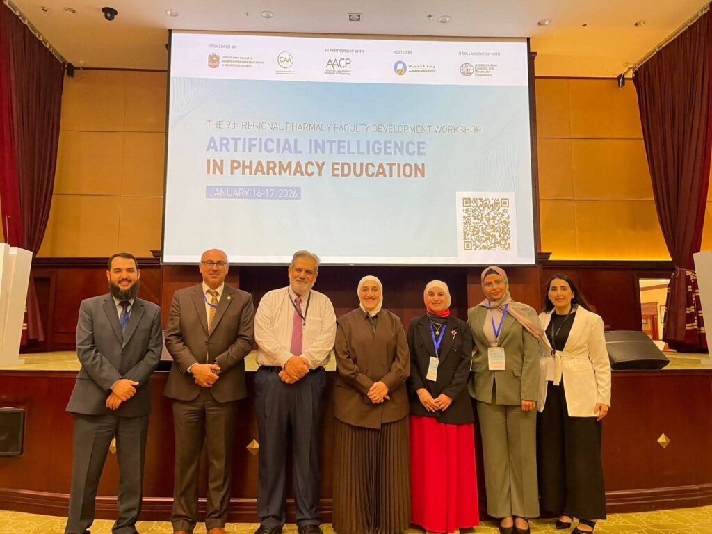 كلية الصيدلة في العلوم والتكنولوجيا تشارك في ورشة “الذكاء الاصطناعي في تعليم الصيدلة (Artificial Intelligence in Pharmacy Education)” في جامعة عجمان