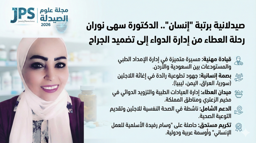 الدكتورة سهى نوران.. نموذج للصيدلانية الأردنية التي أثبتت أن الإنسانية هي “التركيبة الفعالة” في كل عمل ناجح.
