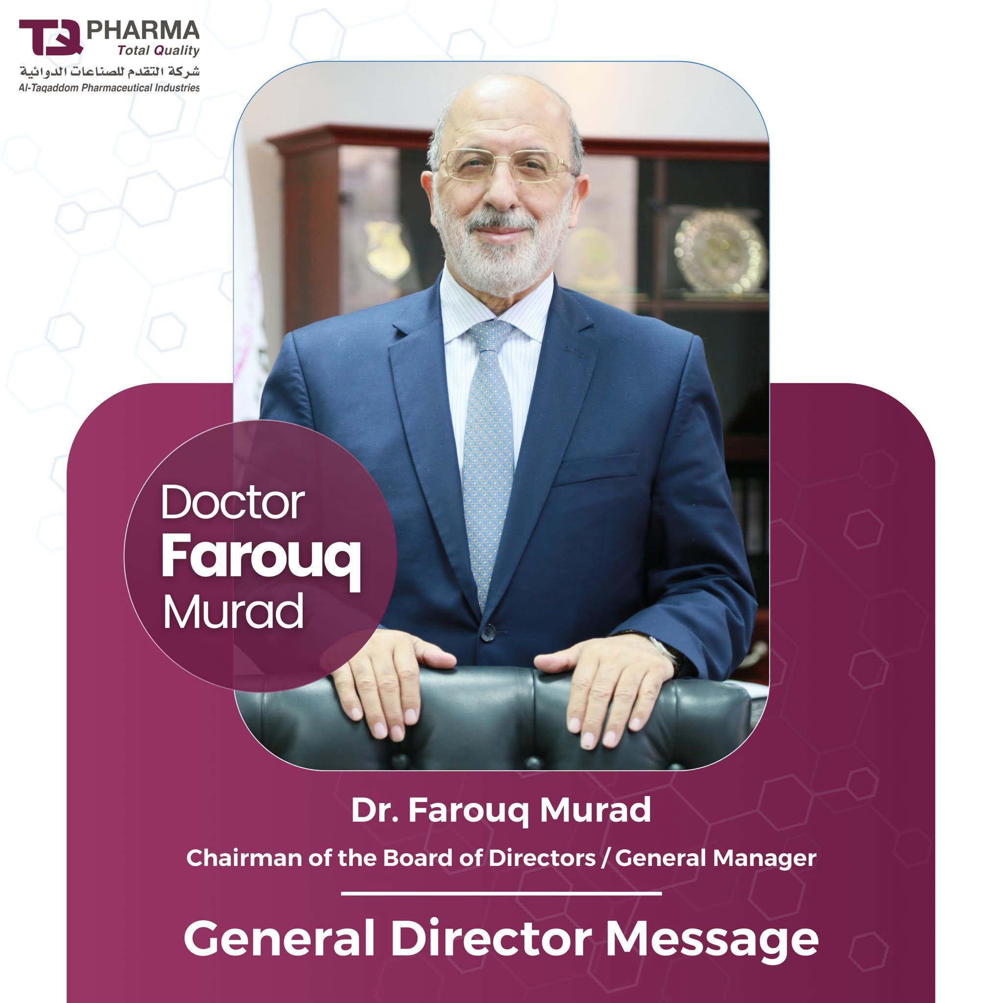 رسالة من المدير العام لشركة TQ Pharma د. فاروق مراد:
