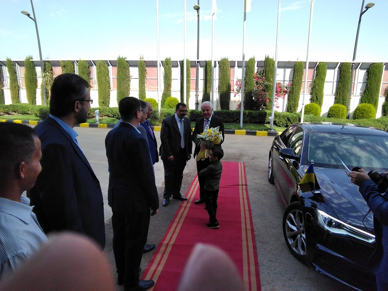 كان في إستقبال الضيف الدكتور فــاروق مــراد المدير العام لشركة التقدم ومدير المصنع الدكتور محمد سليمان ومدراء الإدارات والدوائر في الشركه الذين رحبوا بسعادة السفير وأملهم ان تتكلل هذه بإنطلاق النشاط الإقتصادي.