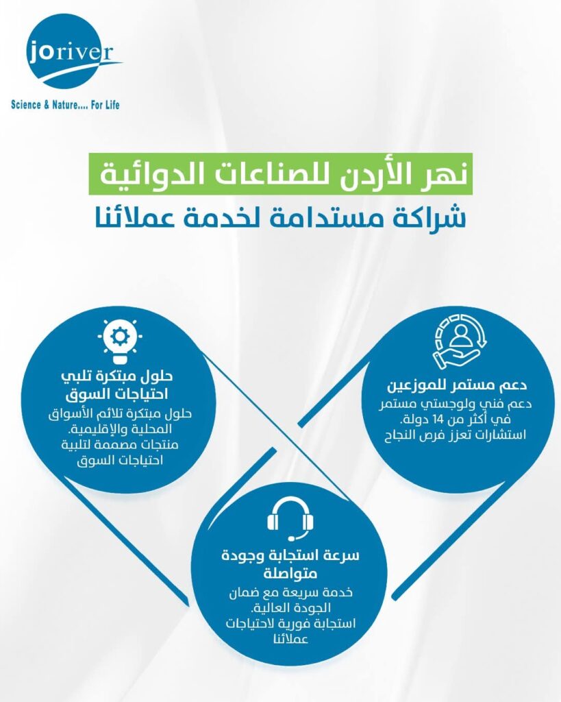 تعتبر شركة “نهر الأردن للصناعات الدوائية” من الشركات المتميزة التي تجمع بين البحث العلمي والمكونات الطبيعية لتقديم حلول دوائية مبتكرة، مع التركيز على بناء شراكات طويلة الأمد تخدم المجتمع الطبي والمرضى في المنطقة والعالم.