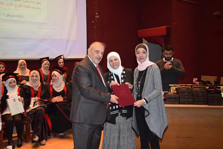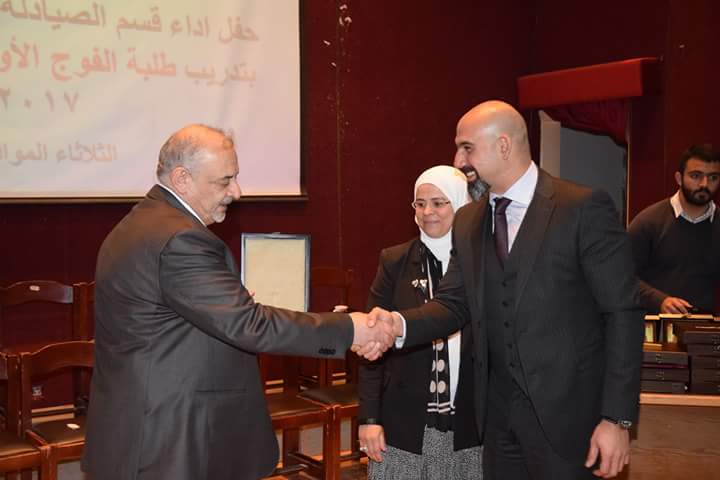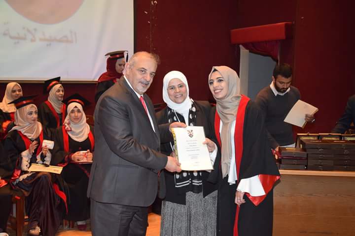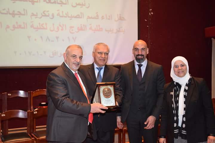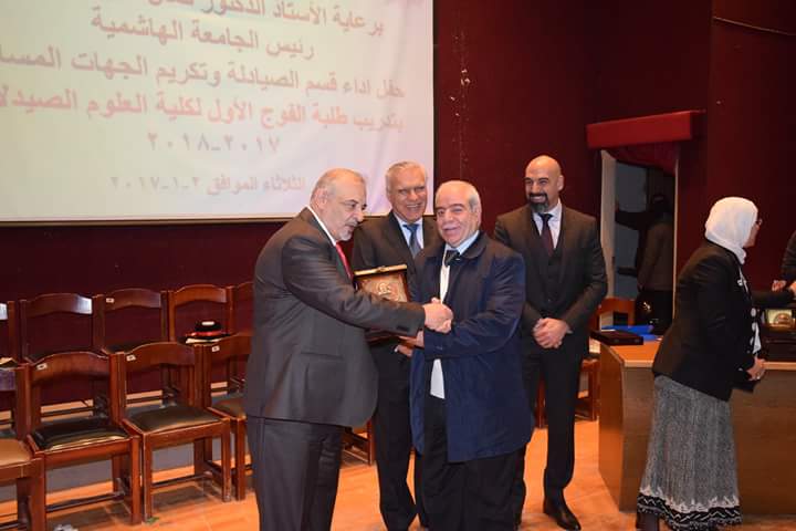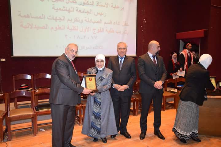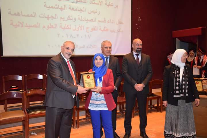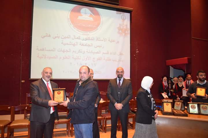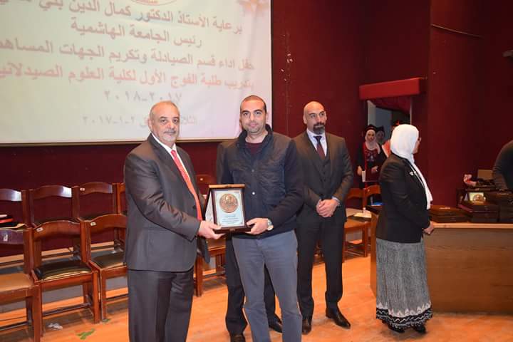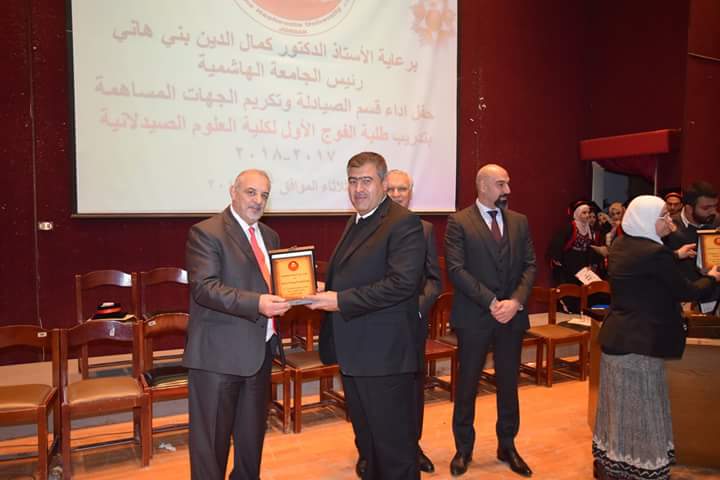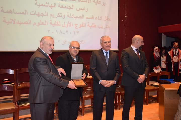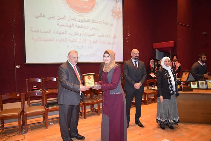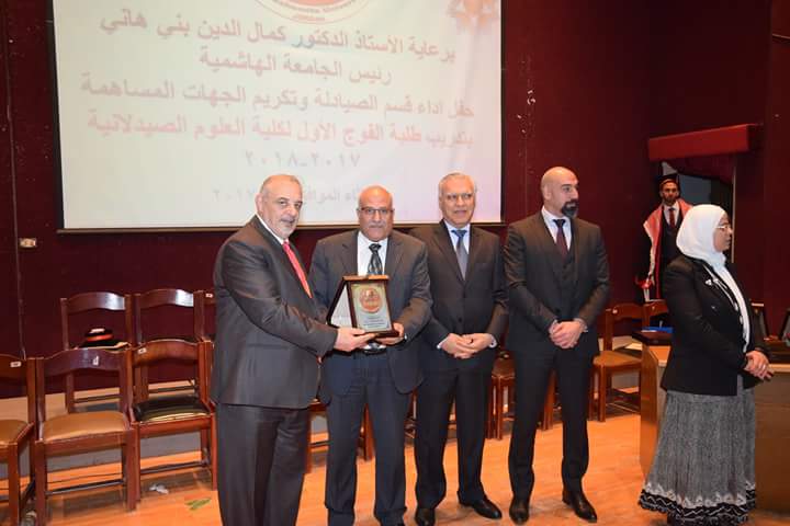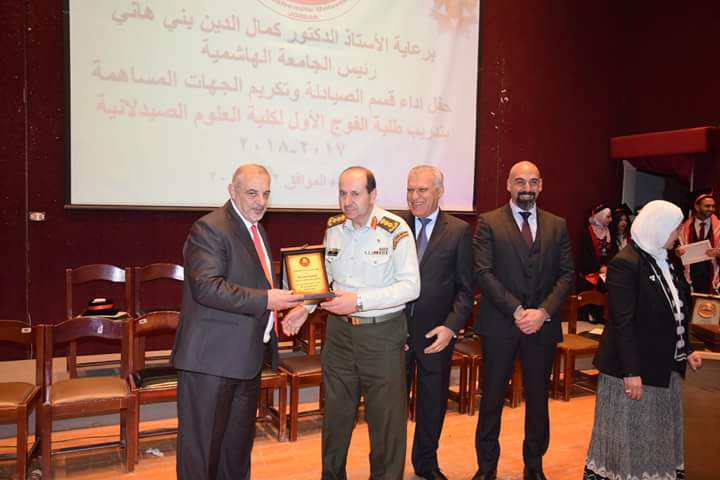 رعى رئيس الجامعة الهاشمية الأستاذ الدكتور كمال الدين بني هاني حفل أداء قسم الصيادلة وتكريم الجهات المساهمة بتدريب طلبة الفوج الأول البالغ عددهم (21) طالبةً وطالباً. بحضور نقيب الصيادلة الدكتور الصيدلاني زيد الكيلاني، والعين الدكتور طاهر الشخشير نقيب الصيادلة السابق، وعدد من مديري مصانع الأدوية، ومندوبي شركات الأدوية والصيدليات.