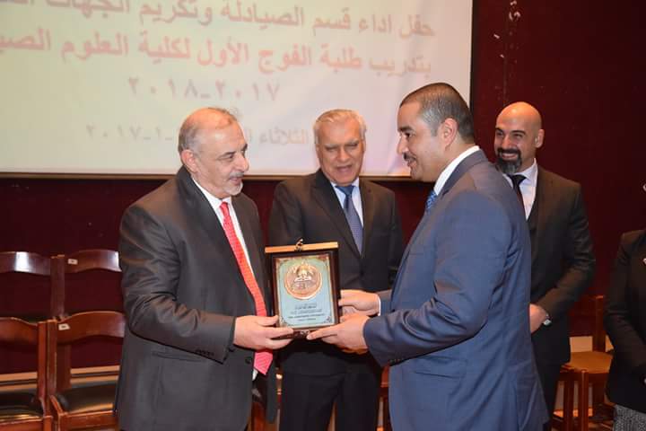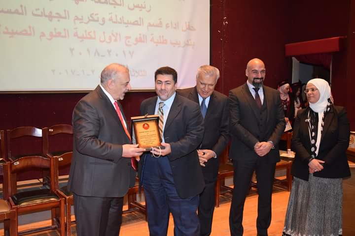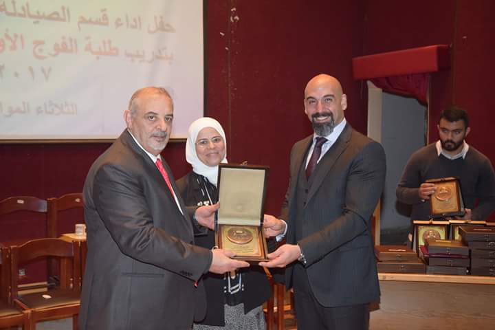 وأضاف قائلا: “ولما كان التشبيك مع قطاعات المجتمع المحلي هو أحد أولوياتنا، فما كان لنا أن نحتفل دون تكريم نخبة من الشركاء في القطاع المهني الصيدلاني، الذين كانوا ولا زالو عوناً لنا في مد جسور التواصل، والمساهمة في إنجاح برامج الكلية على كافة مستوياتها، فالاحترام لكم محفوظ والشكر لكم ممدود”.