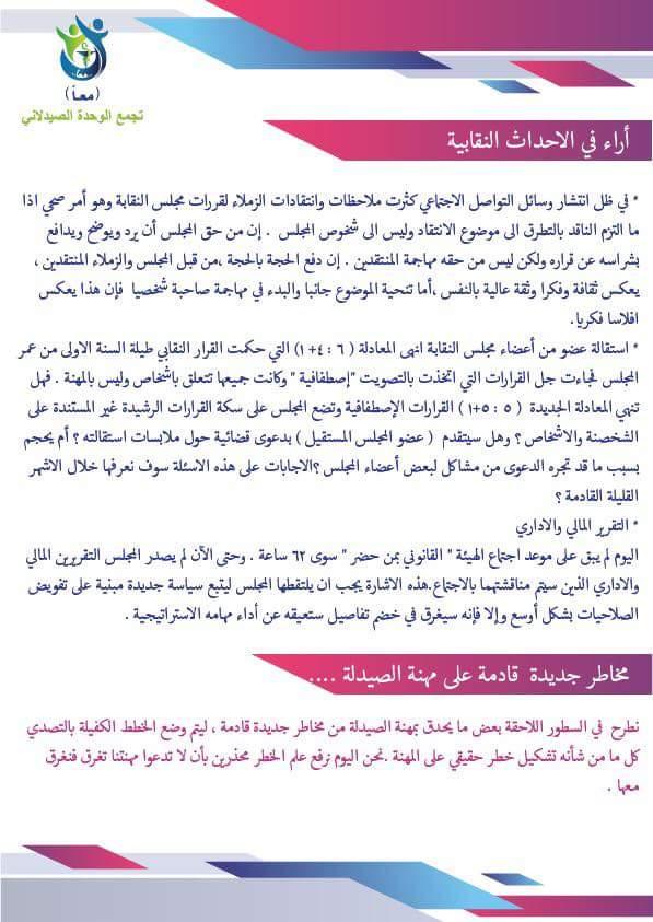 تجمع الوحدة الصيدلاني يُصدر العدد الثالث من ” الفرمشية “… حصاد العام الاول من عمر مجلس النقابة