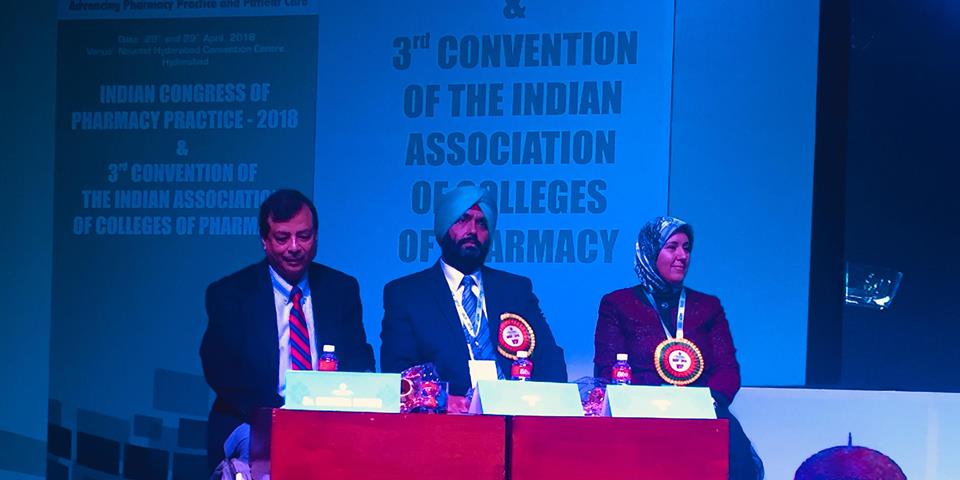 تم عقد المؤتمر الهندي لممارسة الصيدلة 2018 والمؤتمر الثالث للرابطة الهندية لكليات الصيدلة” بحضور ٥٠٠٠ مشارك في “مركز مؤتمرات نوفوتيل حيدر آباد ، الهند” في الفترة من 28 إلى 29 أبريل عام 2018 تحت شعار ممارسة الصيدلة السريرية المتقدمة ورعاية المرضى.