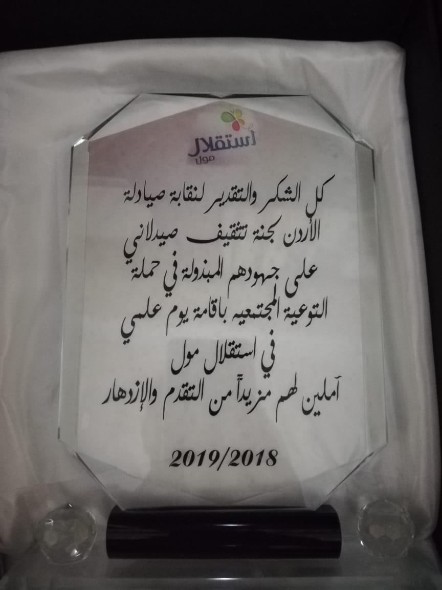 دشّنت لجنة تثقيف صيدلاني النقابية المنبثقة عن نقابة صيادلة الاردن، اولى نشاطاتها المجتمعية بنجاح باهر وبتميز في تقديم الخدمات الصيدلانية والاستشارات الدوائية لمئات المواطنين الذين انضموا لجناح اللجنة في الاستقلال مول.