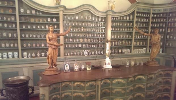 When inside, you are transported into another world. Here you’ll learn about the history of pharmacy and medicine as we have come to know it today. Ours is indeed a tumultuous time when it comes to medicine since large, profit-driven pharmaceutical companies dominate the industry. The rapid innovations of the last hundred years have helped in many ways but have also hindered in others. The once colourful apothecaries have been replaced by the white, staleness of hospitals, doctors’ offices and pharmacies. And no where is this more evident than at the Germany Pharmacy Museum in Heidelberg. Here you see a true apothecary, or pharmacy if you will, and very unlike our sterile, modern day counterparts.