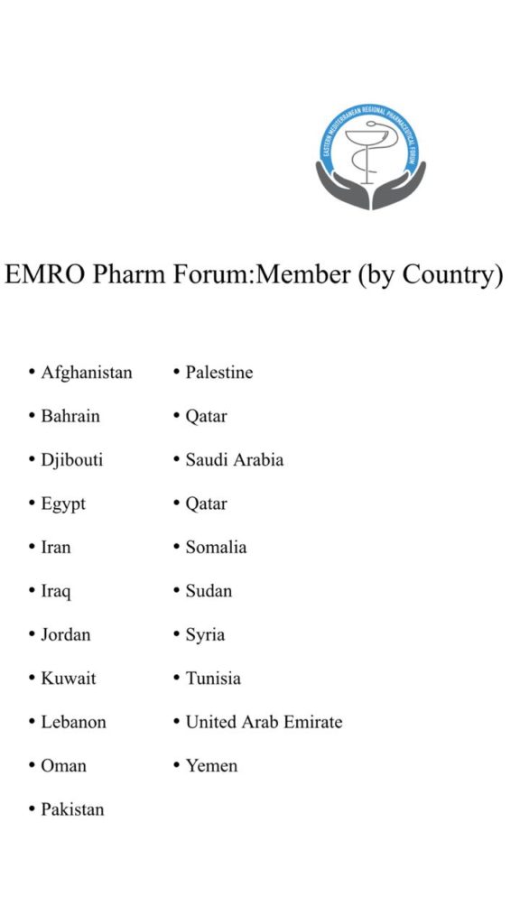 كما يسعى المنتدى الى تنظيم برامج مهنية لتعزيز ممارسة الصيدلة الجيدة وتقوية قوة العمل الصيدلية في دول وأقاليم الدول الأعضاء .