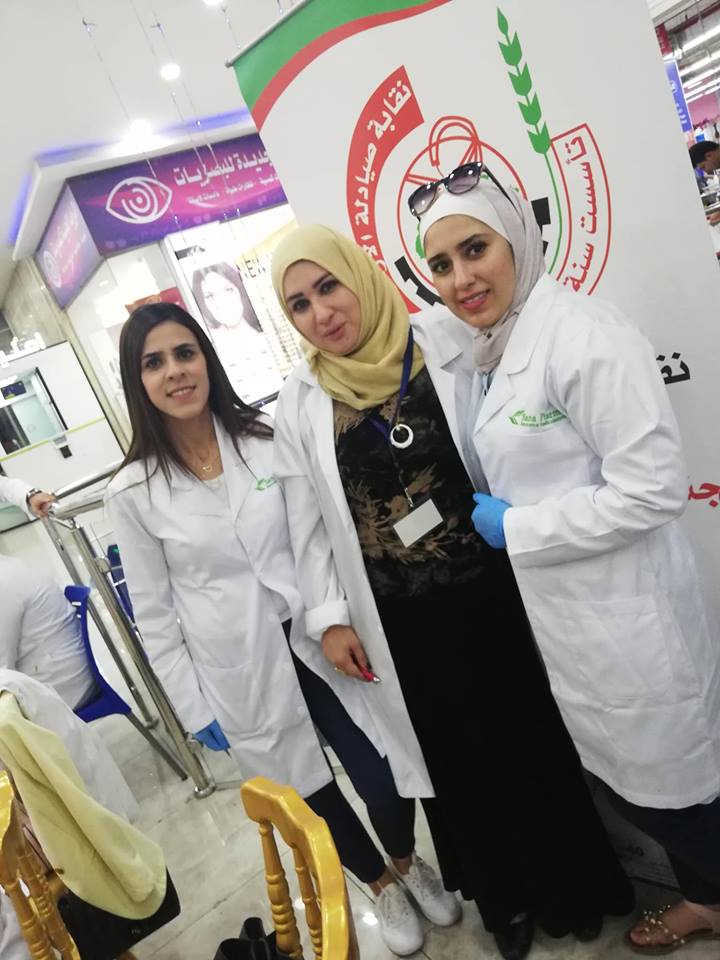 ضمن احتفالات نقابة صيدالة الاردن بيوم الصيدلاني العالمي الذي يصادف في 25 أيلول من كل عام، أنهت لجنة تثقيف صيدلاني النقابية، نشاطها المجتمعي الثالث بنجاح منقطع النظير في عريفة مول في العاصمة عمان، وشارك أعضاء اللجنة النقابية التي ترأسها الزميلة د. وسن الوحش في تقديم خدمات واستشارات صيدلانية لاكثر من 538 حالة بحسب ما كتبته د. وسن الوحش على صفحتها على الفيسبوك.