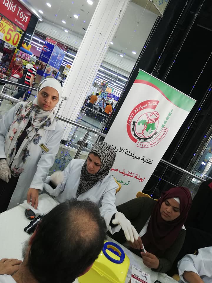 نشاط لجنة تثقيف صيدلاني اليوم _ نقابة صيادلة الأردن.. من عريفه مول.. تم فحص 538 حاله الحمد لله.. حضور جمهور وصيدلاني مميز..
