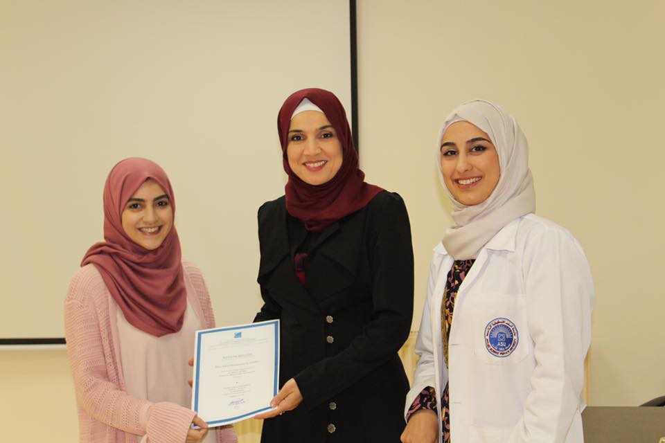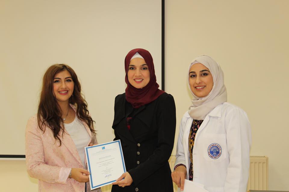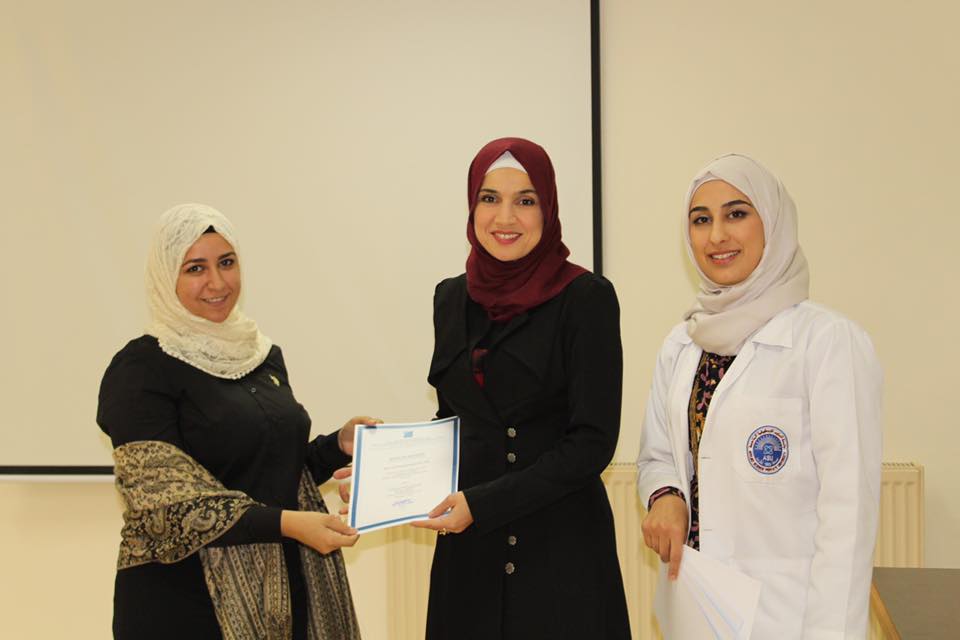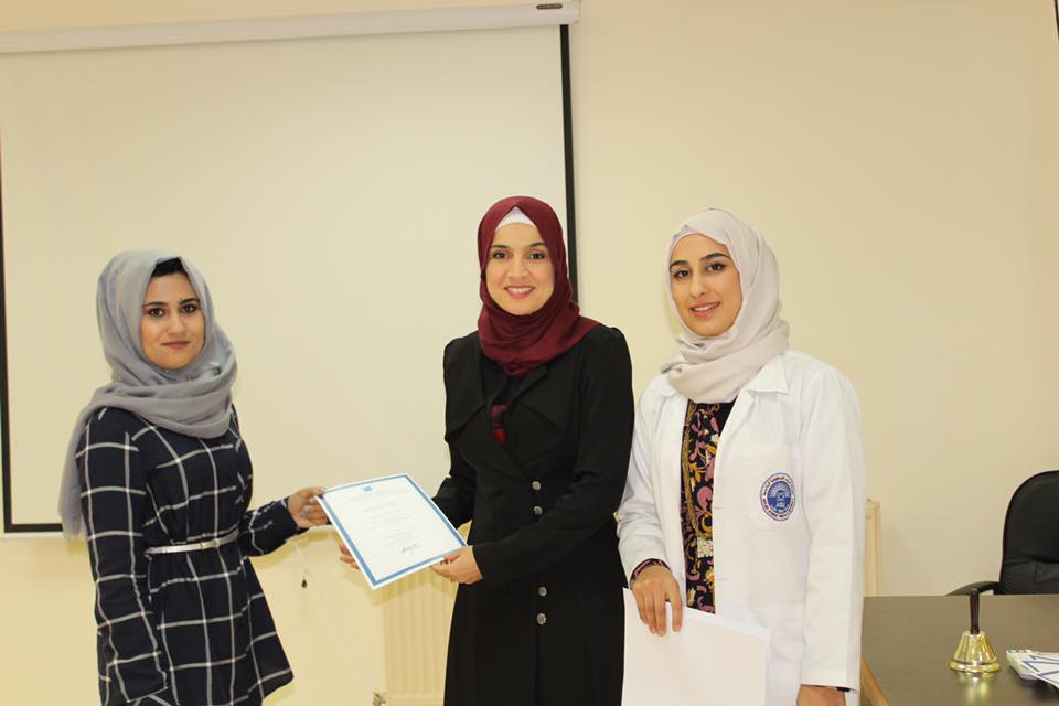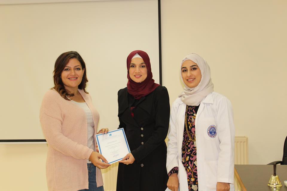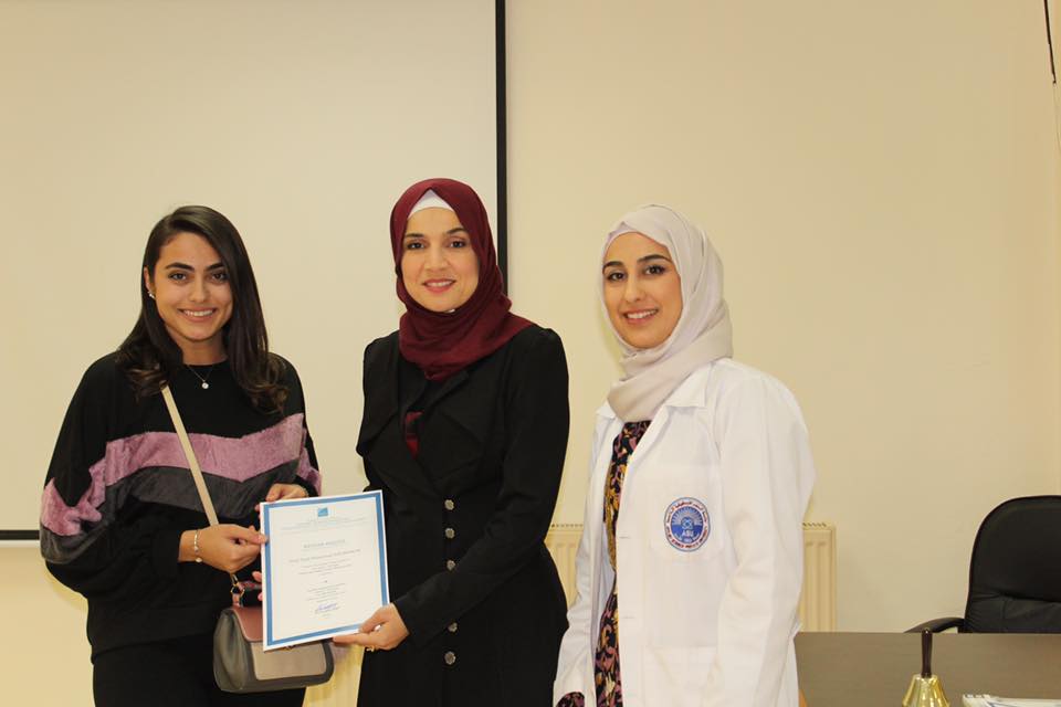 قامت أ.د.إيمان البشيتي عميد كلية الصيدلة في جامعة العلوم التطبيقية الخاصة، بتسليم شهادات للطالبات اللواتي تم ابتعاثهن إلى جامعة اسطنبول 29 مايو التركية، وذلك بهدف تعلم اللغة التركية في دورة مدتها شهر تحت إشراف الدكتورة رجاء القضاة.