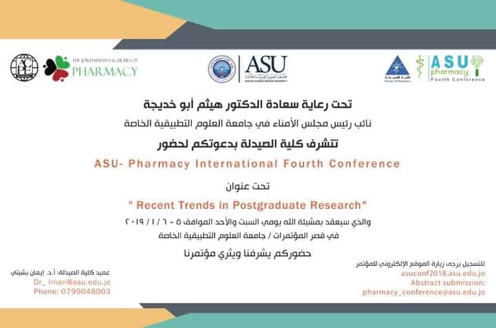 أو التواصل على البريد الإلكتروني للمؤتمر:pharmacy_conference@asu.edu.jo