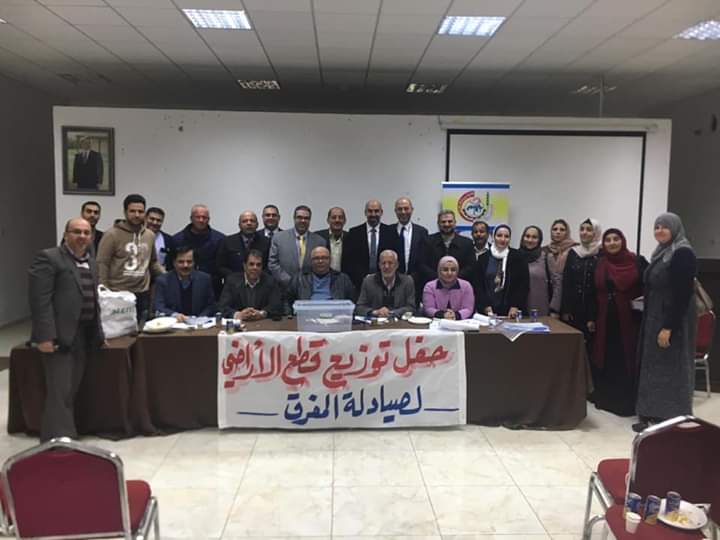 تم بحمد الله و فضله توزيع اراضي المفرق على الزميلات و الزملاء الصيادلة ابناء المحافظة الكرام في اجتماعٍ كانت بدايته كريمة بلقاء الهيئة العامة الصيدلانية و انطلقت بعده آلية التوزيع حيث تم توزيع ٥٦ قطعة من أصل ٦٠ قطعة في إنجازٍ جديدٍ نطوي صفحته سويةً.