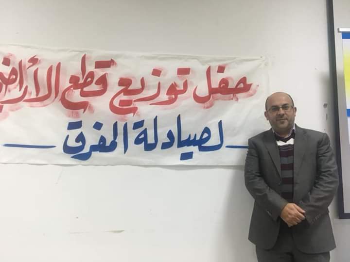 فإنني أتقدم بجزيل الشكر للزملاء لجنة الإشراف على التوزيع لهذه الأراضي و هُم الدكتور محمد العبابنة و الدكتور أحمد عيسى و الدكتور رأفت أبو صالح وهذه اللجنة التي ضمنت القدر الأكبر من الشفافية التي نؤكد عليها في مجلسنا الحالي كأحد أهم ركائز العمل النقابي و المهني ، و للزملاء في اللجنة الفرعية لصيادلة المفرق.