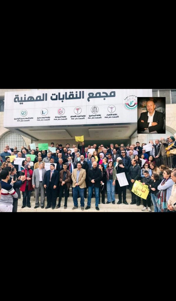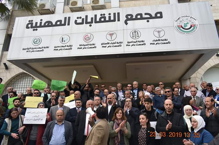 نفذ صيادلة ونواب ونقابيون وقفة تضامنية ظهر اليوم السبت امام مجمع النقابات المهنية في عمان؛ طالبوا من خلالها بالافراج الفوري عن الزميل باسل برقان الذي تم توقيفه من قبل الاجهزة الامتية قبل عدة ايام.
