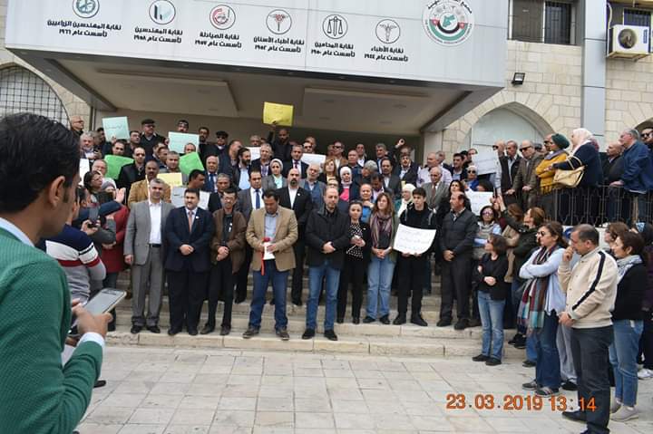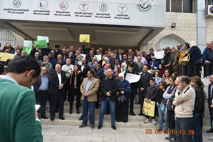 صيادلة ونواب ونقابيون ينفذون وقفة تضامنية طالبت بالافراج عن الزميل د. باسل برقان