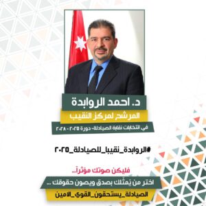 السيرة الذاتية للدكتور احمد الروابدة المرشح لمركز النقيب في انتخابات نقابة الصيادلة الصيدلاني احمد علي الروابده: •خريج الجامعة الأردنية