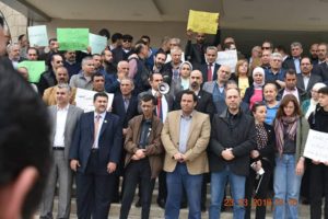 صيادلة ونواب ونقابيون ينفذون وقفة تضامنية طالبت بالافراج عن الزميل د. باسل برقان نفذ صيادلة ونواب ونقابيون وقفة تضامنية