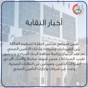 اجتماع بين إدارة البنك المركزي ونقابة الصيادلة لتنظيم العلاقة بين الصيدليات وشركات وإدارات التأمين الصحي في إطار سعي مجلس