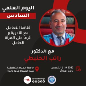 RBCs Team جامعة العلوم التطبيقية يقيم محاضرة بعنوان”أدوية الحمل و الإرضاع ” للدكتور راتب الحنيطي في رحاب كلية الصيدلة