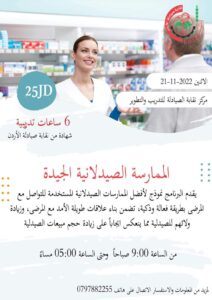 مركز نقابة الصيادلة للتدريب والتطوير يدعو الصيادلة للمشاركة في دورة ” الممارسة الصيدلانية الجيدة “- تفاصيل الزميلات والزملاء الصيادلة