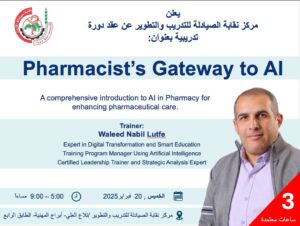 ورشة تدريبية في مركز نقابة الصيادلة للتدريب والتطوير بعنوان :مدخل الصيادلة لعالم الذكاء الاصطناعي يعلن مركز نقابة الصيادلة للتدريب