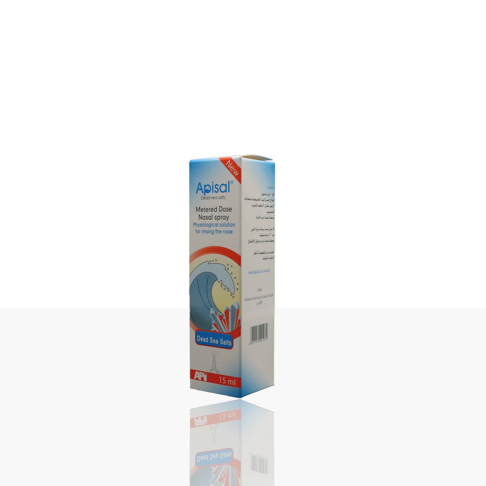 - يحتوي بخاخ الانف ابيسال املاح البحر الميت محدد الجرعة يحتوي أبيسال جت املاح البحر الميت على محلول ملحي فسيولوجي آمن و طبيعي غني بالمعادن الموجودة في البحر الميت مثل أملاح الصوديوم والبوتاسيوم والبروم والزنك والمغنيسيوم والتي أثبتت الدراسات السريريًة فاعليتها كمضادة طبيعي للالتهابات وفعاليتها في علاج حساسية الأنف والتهاب الجيوب الأنفية المزمن.